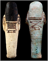 Some New Kingdom shabtis incorporate a ba-bird spreading its wings across the
